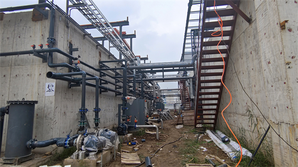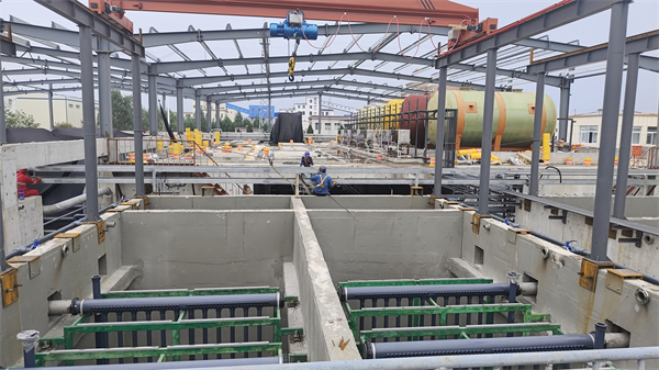項目由山東格瑞水務整體設計建設,總設計規模360m3/H,一期180噸/小時施工,預處理按360噸/小時建設,其他按180噸/H建設,產水處理后達TDS≤1000mg/L,硫酸根≤650/L.的排放標準,濃鹽水進入蒸發結晶處理。處理后達標的水進行外排處理。