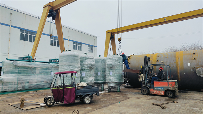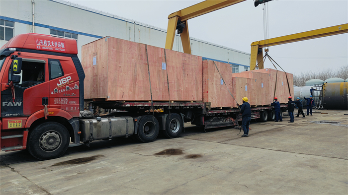 此次發貨的設備是用于石油開采單位的水處理,包括循環水旁濾設備、活性炭過濾器、反滲透機組、加藥裝置、膜元件及系統配件,因出口設備采用木箱打包處理整體設備滿裝4輛大車發往連云港港口再轉運至剛果項目現場。