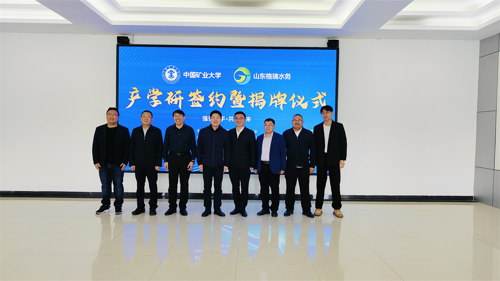 隨后,山東格瑞水務(wù)董事長李新春與中國礦業(yè)大學環(huán)測學院王守剛書記舉行了簽約儀式,礦業(yè)大學王守剛書記與經(jīng)開區(qū)蔡大虎主任為此次合作進行揭牌,隨后大家進行了合影,共同見證格瑞水務(wù)與中國礦業(yè)大學產(chǎn)學研共建基地合作的圓滿落幕。