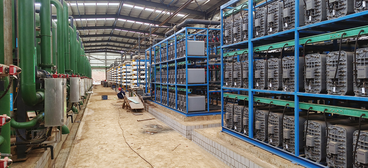 工藝流程:多介質(zhì)過濾器+活性炭過濾器+超濾+雙極反滲透+EDI裝置